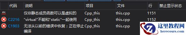 当我们在静态类型函数前加virtual关键字时报错: