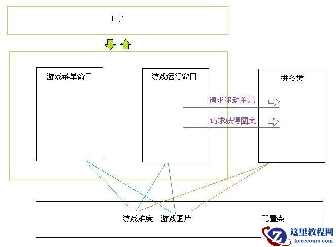 }我们可以认为,配置类就像数据存储,而拼图类呢作为逻辑处理,菜单和运行窗口作为表现用于交互,我承认这种设计不是很合理,但是在问题规模不够大的时候,过分的考虑设计,会不会使程序变得臃肿?我想一定是有一个度,具体是多少,我不得而知,但我感觉,针对这个程序,实现就好,沉迷设计(套路型),有时得不偿失。(个人不成熟的小观点)