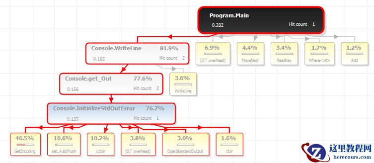 软件的基本工作原理是在.NET编译出的IL代码里放入钩子用来记录时间,然后通过直观的界面显示出哪部分代码耗能最大。所以这是性能调优最直接的方法,针对最耗时的代码段进行优化即可。