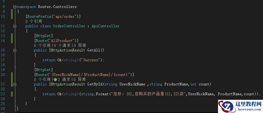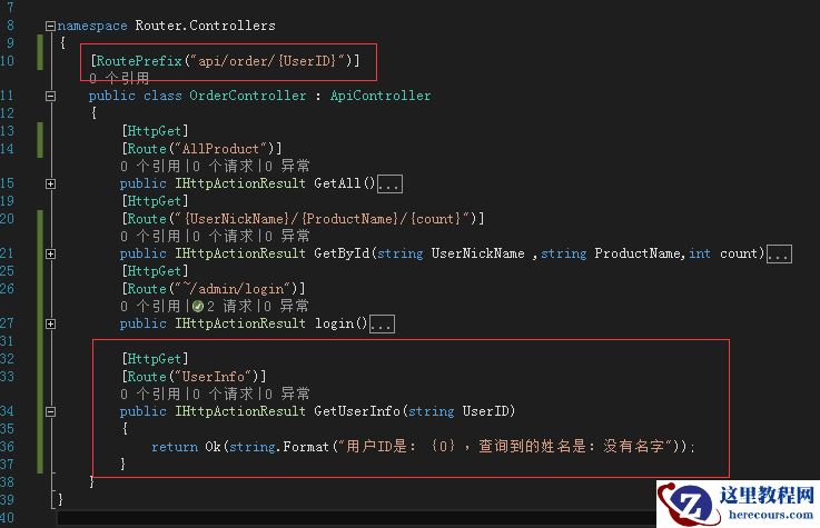 }在要使用属性路由的方法上打上特性标记,如下 :