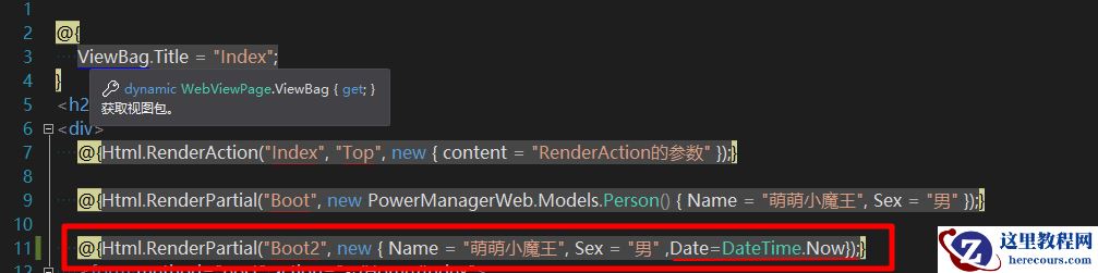 上述红框中即为用 Html.RenderPartial 方式传值。