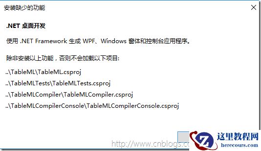 如果打开项目所需要的组件,当前VS并没有安装,VS会自动弹出让你安装的界面,如下所示: