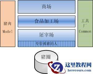 猪肉好比Model,无论是哪个厂(层),各个环节传递的本质都是猪肉,猪肉贯穿整个过程。