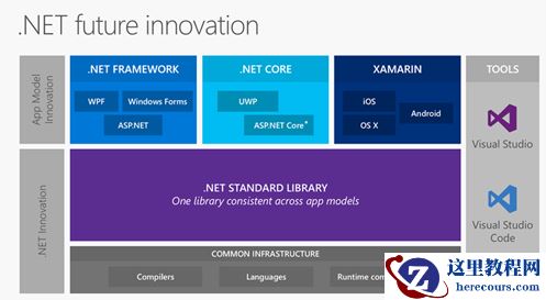 现在的.NET Core 1.0版本是一个很小的核心,APIs和工具也并不完整,但是随着.Net Core的不断完善,补充的Apis和创新也会一起整合到.NET Framework中。也就是说,.NET Core微软会同时更新.NET Framework和.NET Core,他们就像俩兄弟,共同努力致富(致谁的富?当然是.NET开发者们),实现所谓的天下大同,也就是.NET 标准2.0
