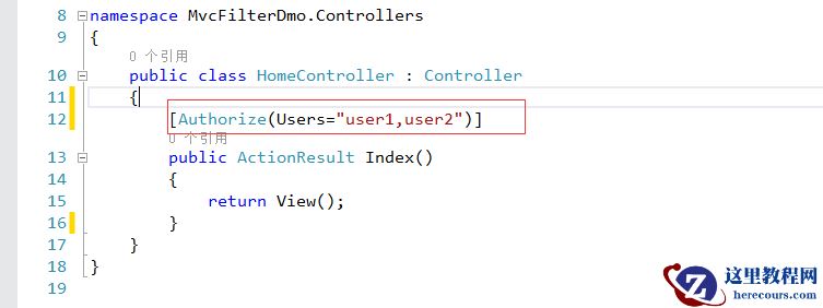 2.添加Authorize(Users=“a,b”)],表示启用了验证,并且也启用了授权,只有a或者b用户能访问此控制器。