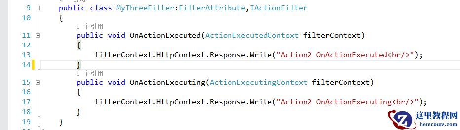 动作过滤器是可以以用于任何目的的多用途过滤器,创建自定义动作过滤器需要实现IActionFilter接口,该接口代码如下所示: