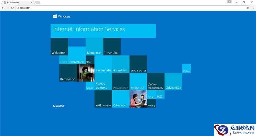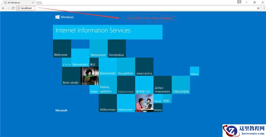 6、重启电脑后,测试IIS配置是否成功。在浏览器栏,输入“http://localhost”,若出现如下界面,则表示IIS安装成功。