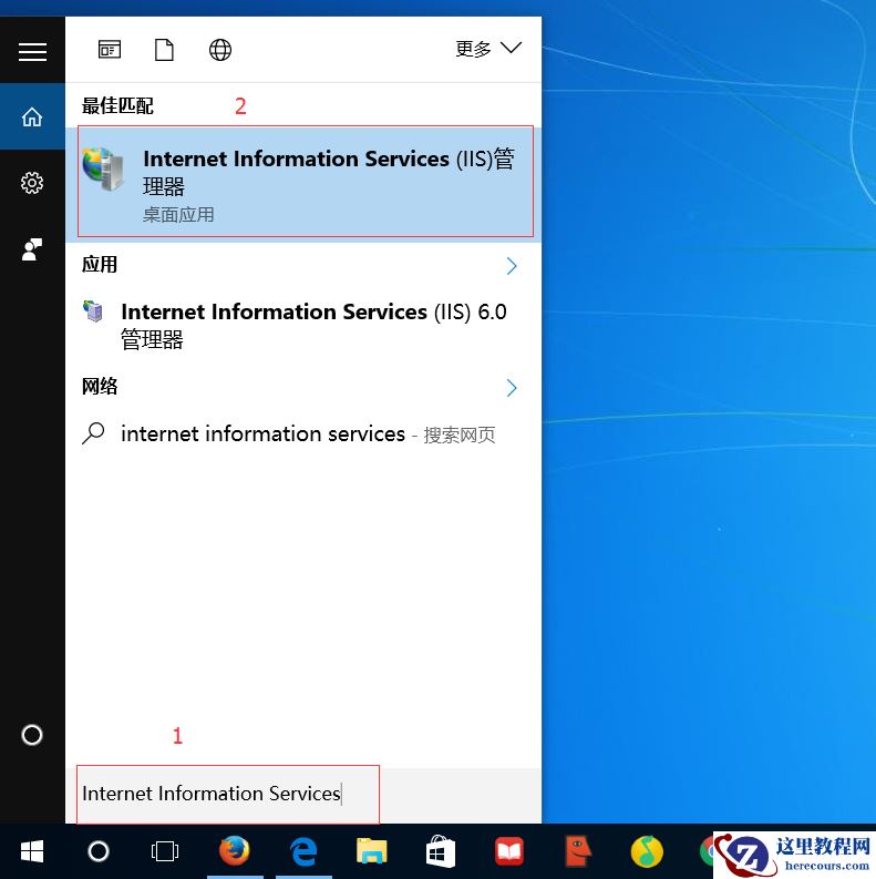 1、在“我是Cortana,小娜,有问题尽量问我”输入框输入“Internet Information Services”.