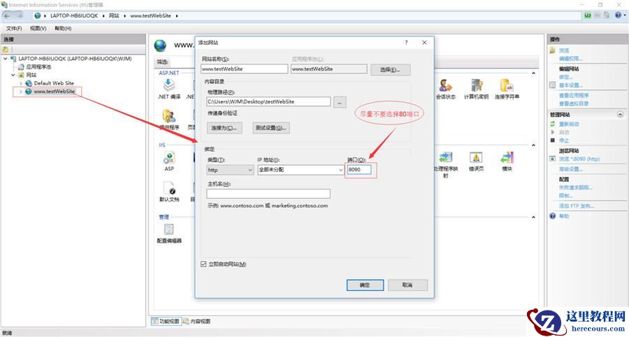http默认端口为:80,IIS发布时,选择其他端口。