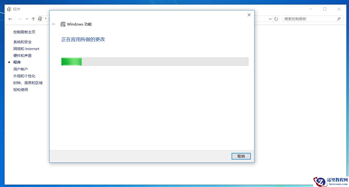 1、打开“控制面板”—>选择“程序”。