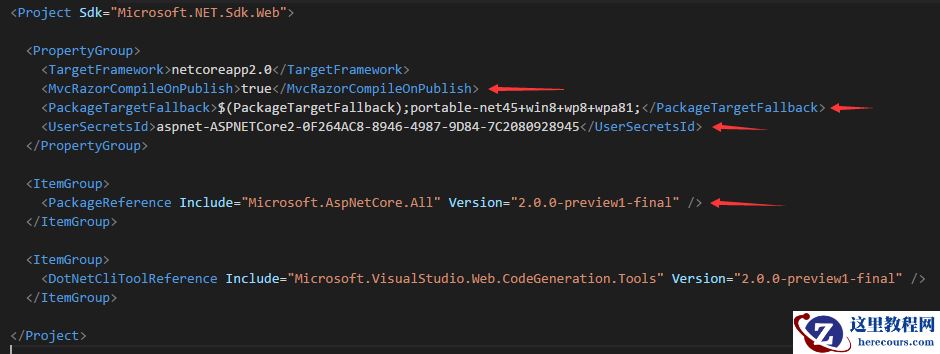 在 2.0 中,当创建一个 MVC 项目的时候,生成的 csporj 项目文件如下: