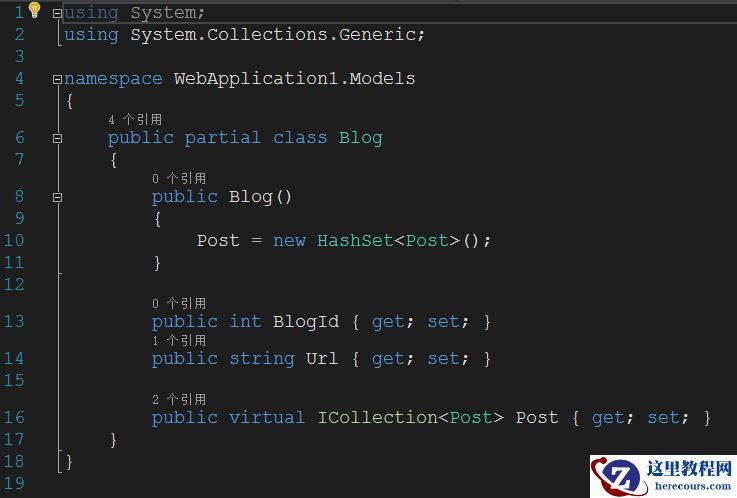 项目会生成一个model文件夹,里面有我们需要的实体类和上下文BloggingContext.cs