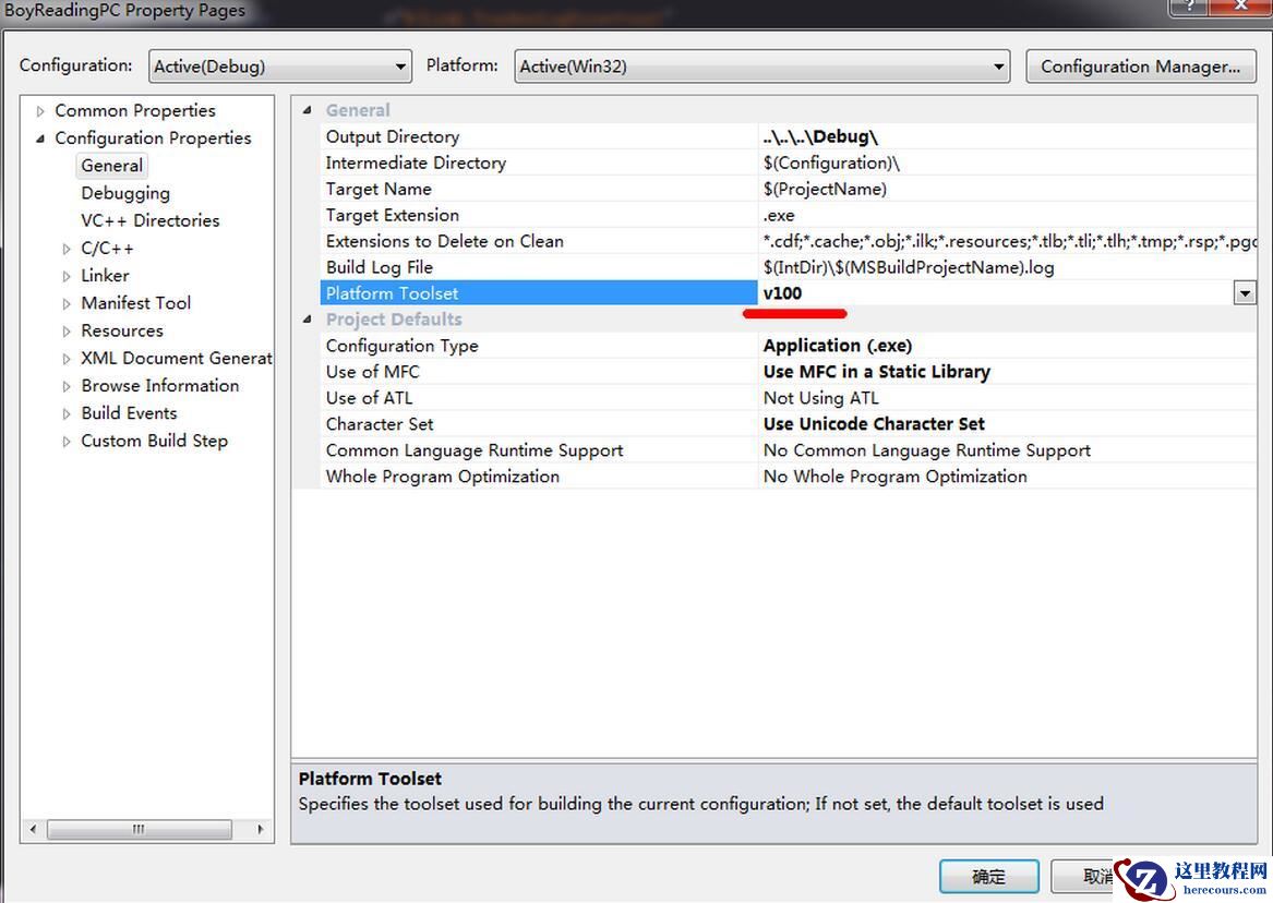 解决方法:右键点击你的项目。选择属性。再点击配置属性中的常规。常规中有个平台工作集,把V110改成V100,点击应用就可以。