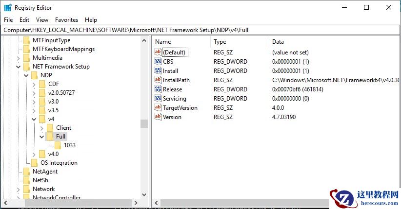 3: Check .NET Framework Version in Registry