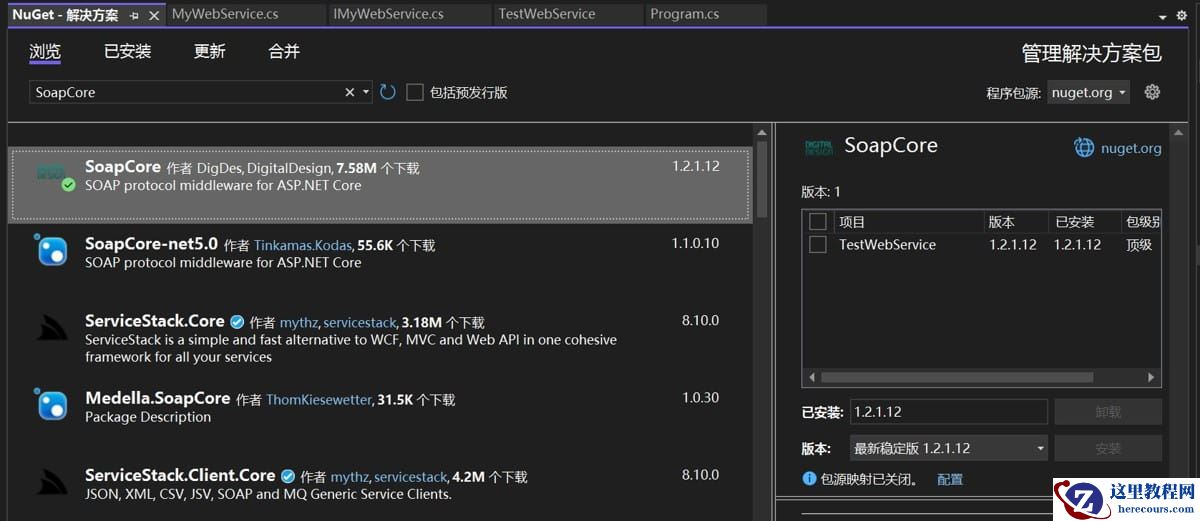 建好项目后,在nuget控制台或者管理界面,为项目添加SoapCore引用。