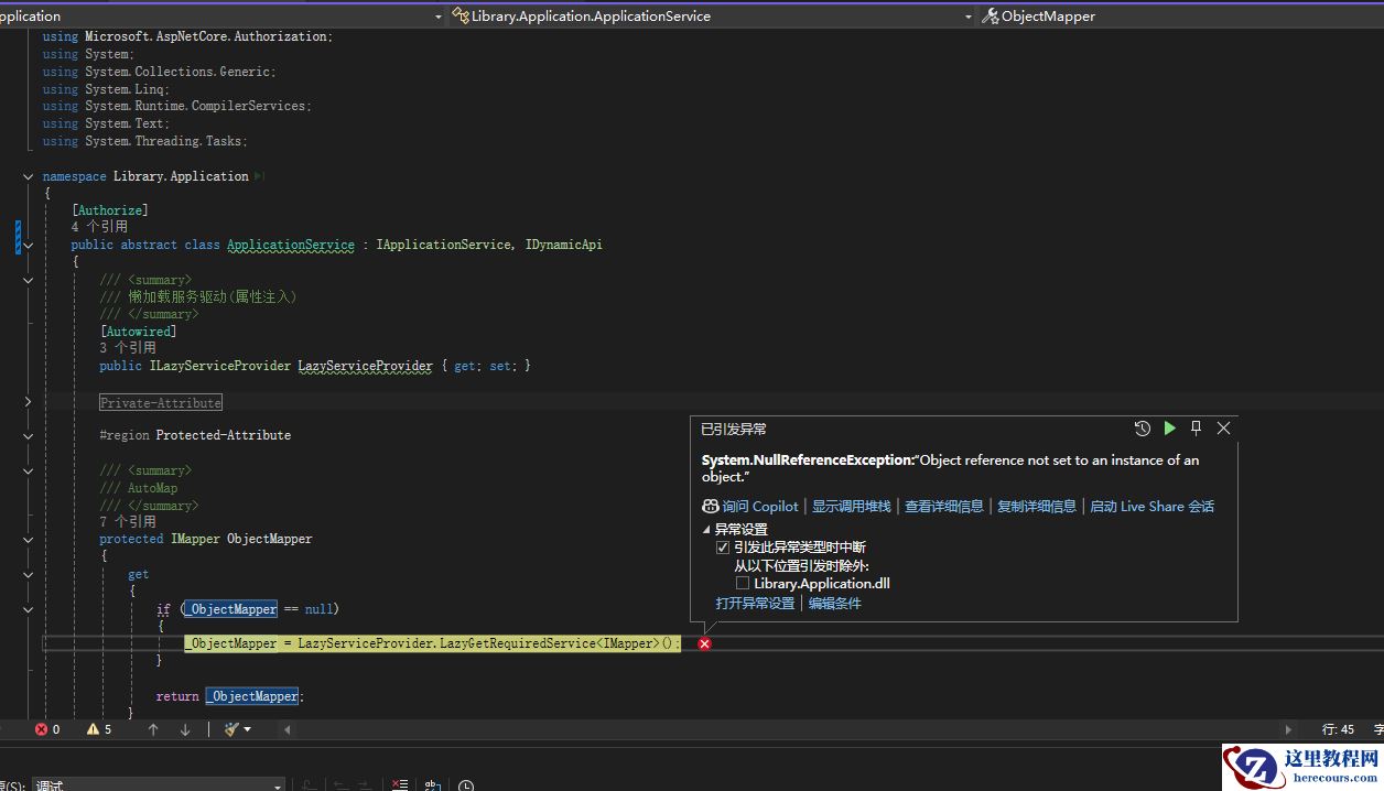 我有一个授权Service【AuthService】继承抽象类【ApplicationService】,程序会后会将所有继承IApplicationService的Service动态转换为Api接口,在swagger使用原生Controller控制器接口调用AuthService是没有问题的,测试【AuthService】的动态接口报错【LazyServiceProvider为null】