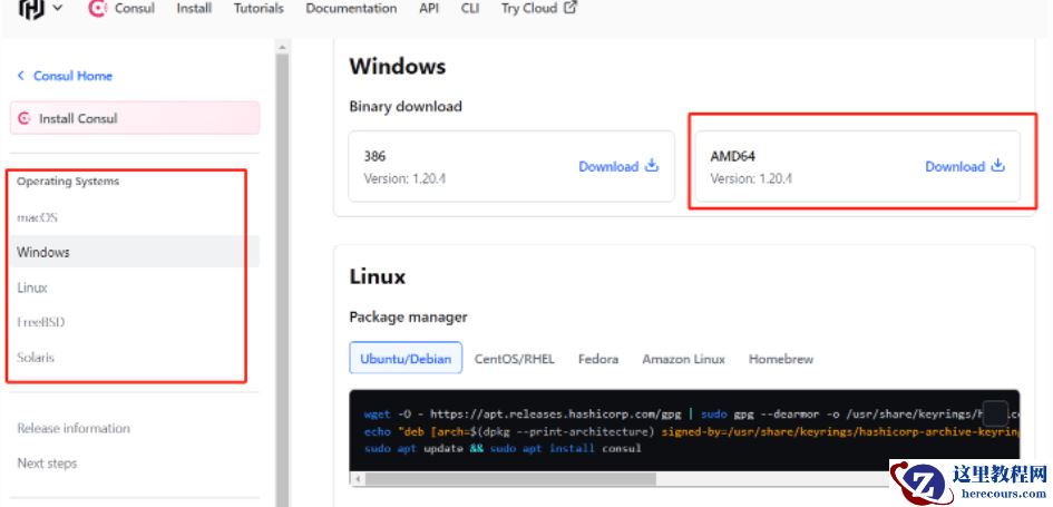 Consul官网地址:Consul | HashiCorp Developer,Consul安装非常简单,在官网,点击download