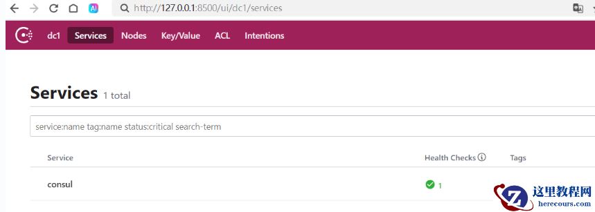 浏览器中访问地址,http://localhost:8500/判断Consul服务是否运行成功。