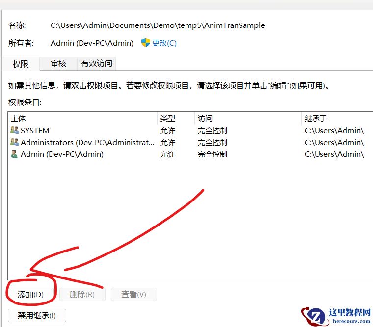 简单说说操作,在目录上右击,打开“属性”窗口,切换到“安全”页。点击下面的“高级”按钮。