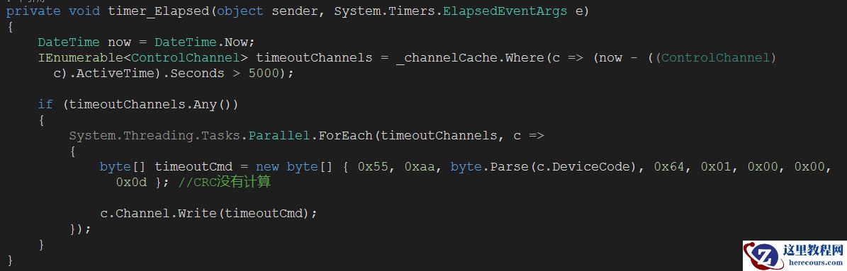 在这里边有一个注意的地方,就是设备驱动在规定的时间内没有反馈控制命令的确认信息,也就是传感器没有反馈相应的信息。这种情况要增加一个定时检测服务,如果超时没有反馈信息,发送给控制端相应的消息。代码如下图: