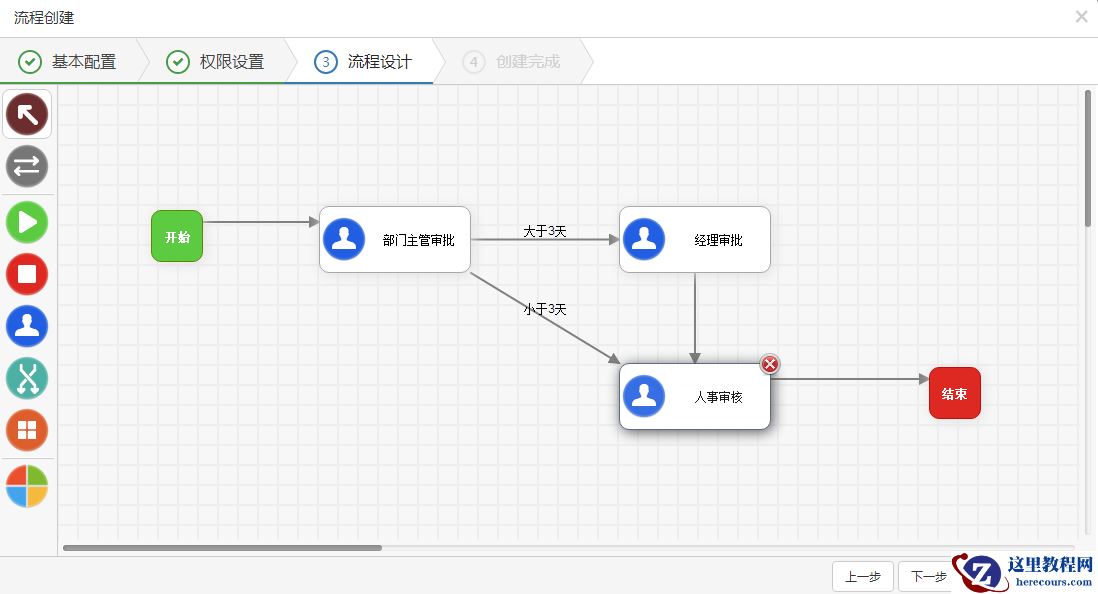 12.点击下一步,并保存。一个请假工作流就设计完成了