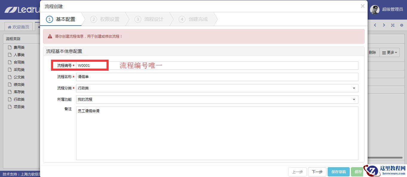 7.点击新增,进入流程设计界面,填写流程基本信息