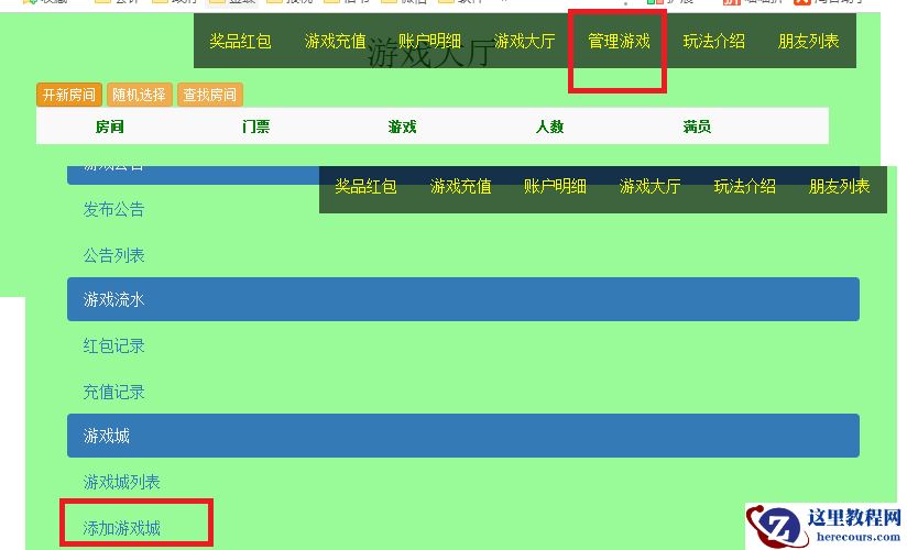 登陆后应先进入"管理游戏"菜单添加一个游戏城,然后返回"游戏大厅"新建一个房间