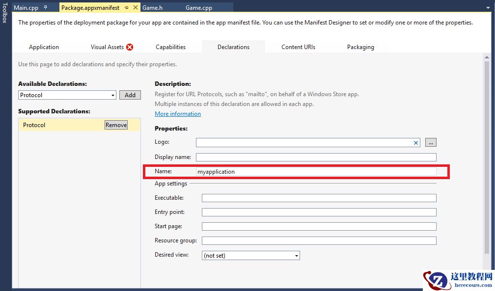 给我们的UWP应用添加一个协议,like this: