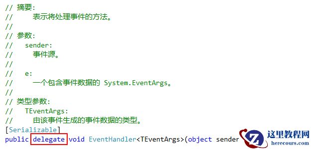 为了弄清彻底弄清事件和委托的关系,我们查看下EventHandler的源代码,如下图。