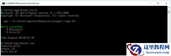 dotnet build编译代码,然后dotnet run执行程序: