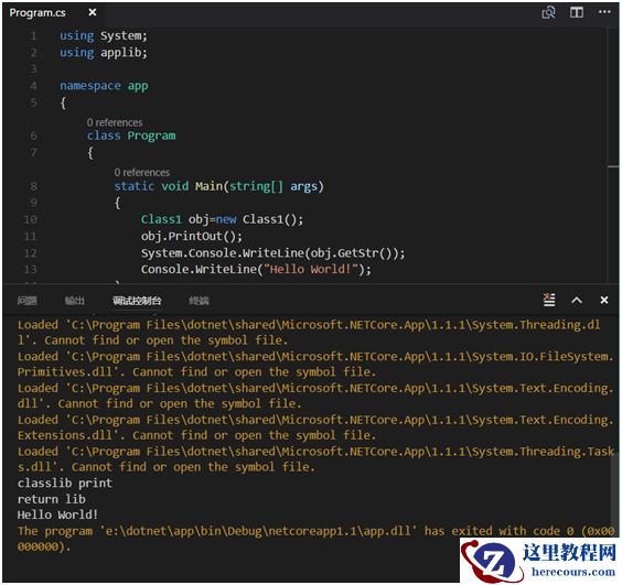 在代码中编写对应的调用,然后执行程序。可以看到正确输出了class lib的结果。