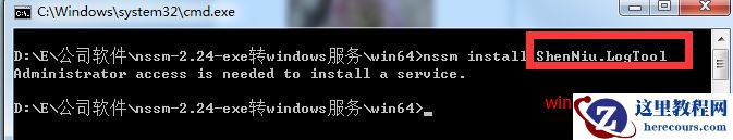 然后利用nssm工具,首先通过cmd命令执行如下命令: