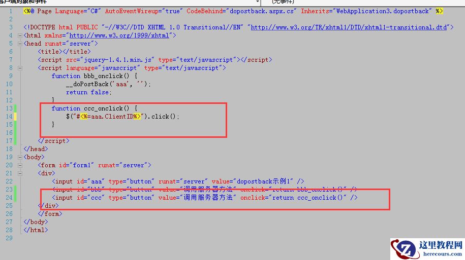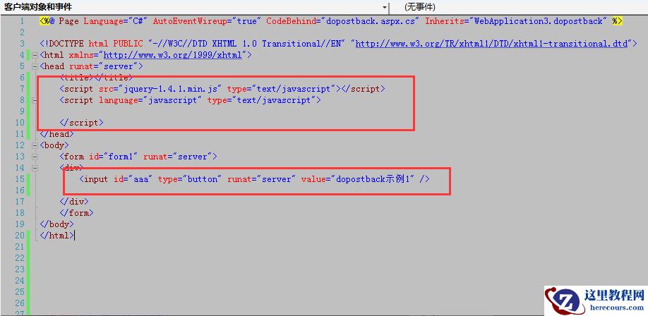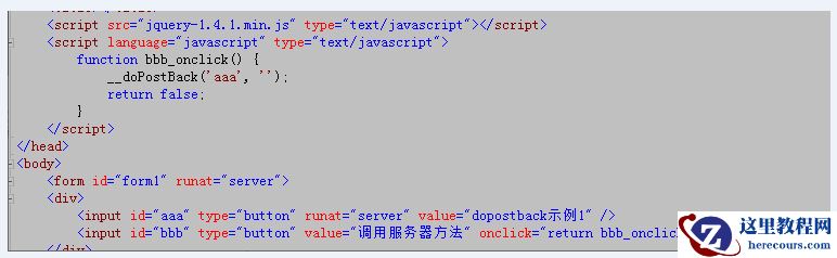 然后我添加了一个html元素 在js里面给它绑定dopostback的方法