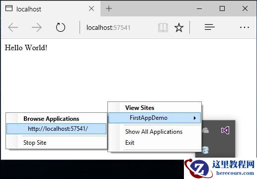 在系统托盘的窗口中,您还可以看到,IIS Express正在运行。