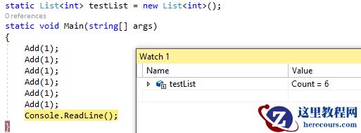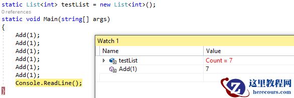 现在想查看Add当前执行的返回值,可以在Watch窗口输入Add(1),但是这会产生负影响,改变testList的值为7,