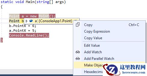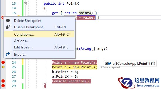 首先我定义了一个类,并初始化了两个对象,更改PointX的值,想要添加实例a的PointX值的改变断点