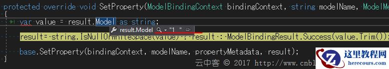 result= string.IsNullOrWhiteSpace(value) ? result : ModelBindingResult.Success(value.Trim());