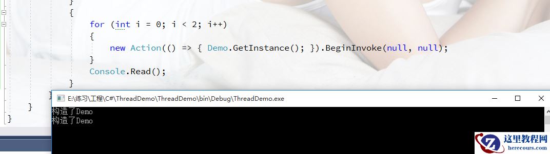 new Action(() => { Demo.GetInstance(); }).BeginInvoke(null, null);