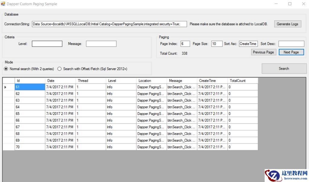 之前事先搜索了下博客园上关于Dapper分页的实现,有是有,但要么是基于存储过程,要么支持分页,而不支持排序,或者搜索条件不是那么容易维护。