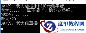 Console.WriteLine("DW039:老大给我报销10元钱车费......");