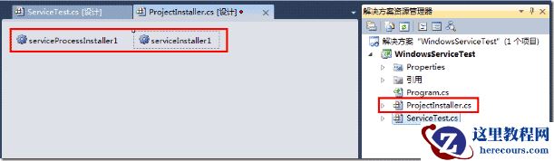 之后我们可以看到上图,自动为我们创建了ProjectInstaller.cs以及2个安装的组件。