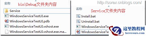 在WindowsServiceTestUI的binDebug目录下建立Service目录。