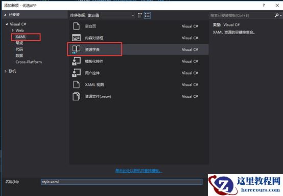 1) 创建文件夹Themes右键添加新建项visual C# àxamlà资源字典 style.xaml