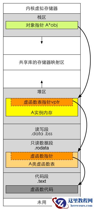 虚函数在虚拟存储器中的位置