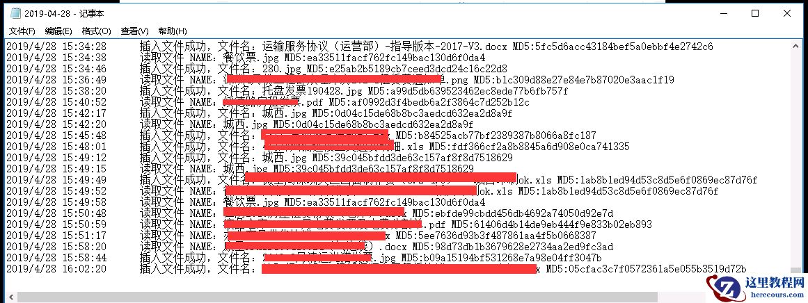 LocalLog.Write("读取文件 NAME:" + filename + " MD5:" + md5str);