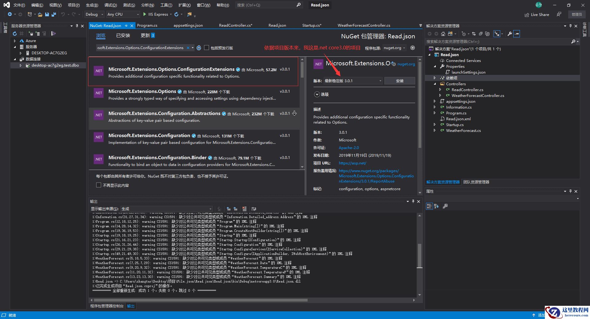 先把NuGet包导进项目:Microsoft.Extensions.Options.ConfigurationExtensions