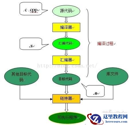 从图上可以看到,整个代码的编译过程分为编译和链接两个过程,编译对应图中的大括号括起的部分,其余则为链接过程。