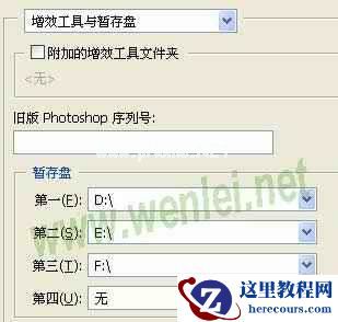 然后 把"第一(F)"设置你电脑上空间余量比较多的盘(如图2)。然后关闭photoshop重新启动一次既可解决问题!