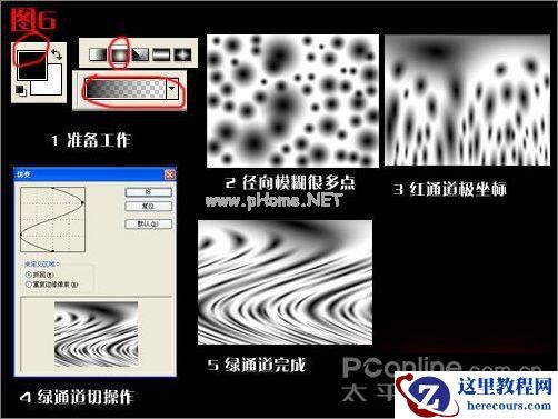 1、新建文件,RGB模式,背景白色;将前景色设置为黑色,调整“渐变”为黑色到透明,渐变模式选择为“径向渐变”(圆形渐变),然后在画布上随意大小,多刷几个;进通道面板,选择红色通道,其他的关闭,执行菜单—滤镜—扭曲—极坐标—极坐标到平面坐标;之后打开绿通道,执行菜单—滤镜—扭曲—切变。