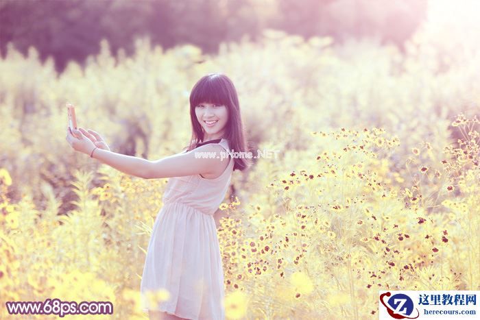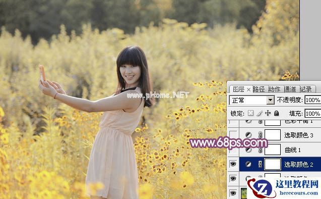 Photoshop调出纯美淡黄色的美女照片调色教程